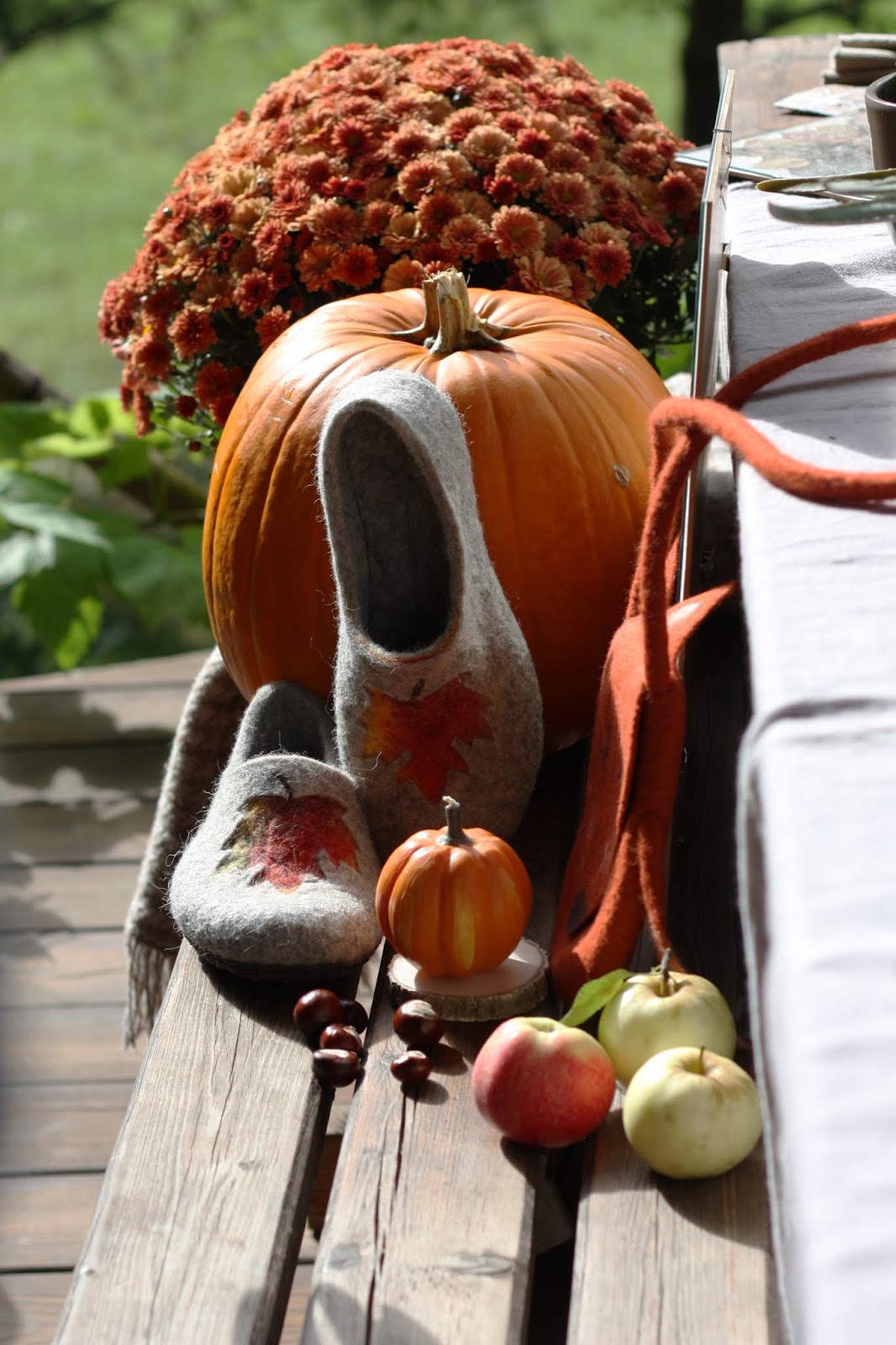 Our hostess Jurga harvested pumpkins, leafy greens for a soup and some freshly picked mushrooms from the forest near by. Naturally it all became a part of arrangements, including snacks, coffee mugs and of course our handcrafted items. While chatting, laughing, sipping coffee, talking some important stuff we managed to take some vibrant seasonal pictures and tried a simple D.I.Y ideal for setting an Autumn inspired table.